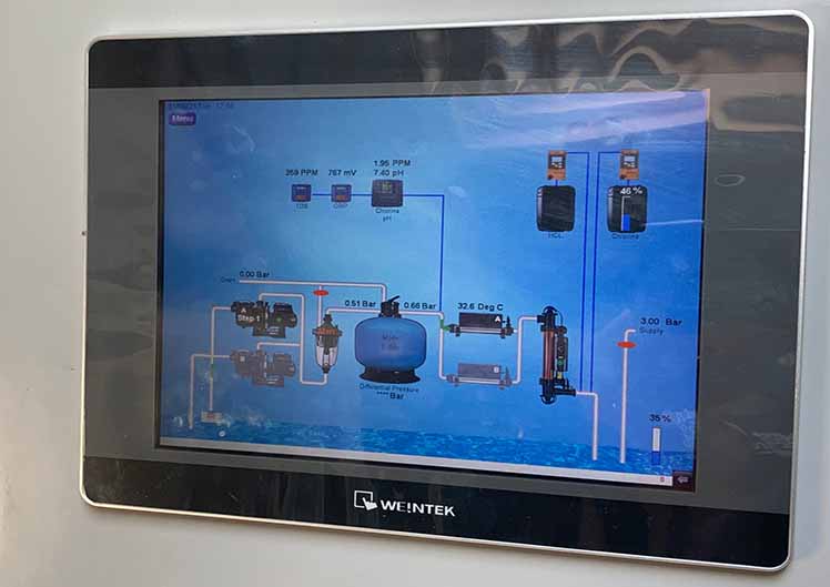 The plant room has a large level of equipment redundancy, including pumps and heaters, ensuring any downtime is kept to a minimum. The control is all PLC based and accessed through our HMI touchscreen control panel and remote monitoring. Should any item need attention, the system notifies us through the internet so any corrective action can be taken. The water chemistry is fully automated with its readings constantly logged. We have a rigorous maintenance and calibration schedule in place to keep everything running smoothly.