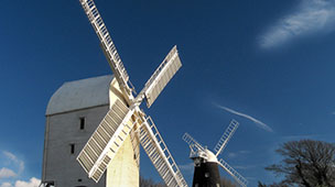 The Jack and Jill windmills are located at the top of the stunning South Downs in Clayton, close to Ditchling. Jack is one of very few male windmills and was made male after the Anglo Saxon remains that were found during his construction in 1866. In 1973 they became famous when Universal Studios made a film called The Black Windmill, featuring Michael Caine. Jill is open to the public and still mills flour today.